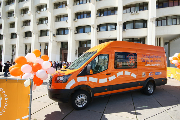 …В ярко-оранжевом автомобиле - настоящая лаборатория безопасности. Внутри: велосипеды, самокаты, конусы, стенды, столы-макеты, элементы уличной сети и т.д. Все это - для моделирования дорожных ситуаций и обучения детей ПДД. Методологию разработали ведущие эксперты НИИ и вузов в области БДД, медицины, психологии и педагогики. Оборудование легкое, что удобно детям и преподавателям. И когда все эти штуки расставили на улице и первом этаже здания АВО, то и получился целый автогородок, яркий и интересный. И он сразу ожил. Ребятишки попробовали себя в роли пешеходов, пассажиров и даже водителей.