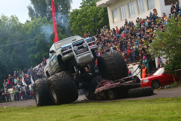 За два часа шоу они порадовали стадион многочисленными форсажами и дрифтами самых разных, иногда умопомрачительно переделанных машин, автофристайлом, «жигулями», виртуозно гоняющими с задранными крыльями на двух боковых колесах — да еще с людьми, балансирующими на краю крыш. При этом в отдельных экстремальных номерах брали с собой в кабину самых смелых совершеннолетних зрителей, чем довели некоторых из них до полного восторженного катарсиса. Выпустили на дорожку грузовик, способный мчаться только на задних колесах, и легковушку, которая делится точно пополам — и после этого обе половинки, задняя и передняя, гоняют как бешеные отдельно друг от друга. Подбросили каскадера в горящие круги. А другого и вовсе подпалили — и он вдоль всех трибун бежал веселым факелом до места своего эффектного тушения коллегами. А на самое «вкусное» выпустили легковушку-трансформер (реально трансформер!) и устроили поединок «девятки» с так называемыми «биг-футами» (авто на циклопических колесах с мощными кенгурятниками), в финале которого «биг-футы» под довольные вопли публики запрессовали маленькую машинку до состояния железного блина. При этом внутри нее практически до самого последнего момента находился каскадер — один из самых сумасшедших, судя по шоу, членов команды Кочерги, Роман Романов - красивый, пижонистый, безбашенный и — да, крутой.
