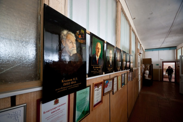 «Вынырнув» из ауры мастерской, мы увидели другой облик Мстеры — облик полуразрушенного поселка. На него не падает солнечный луч, несущий красоту и радость. Чернотой зияют брошеные дома. Везде неубранные кучи мусора, даже в самом центре. Да и здание, куда ради экономии переселился Центр лаковой миниатюры, иначе как убогим не назовешь.
