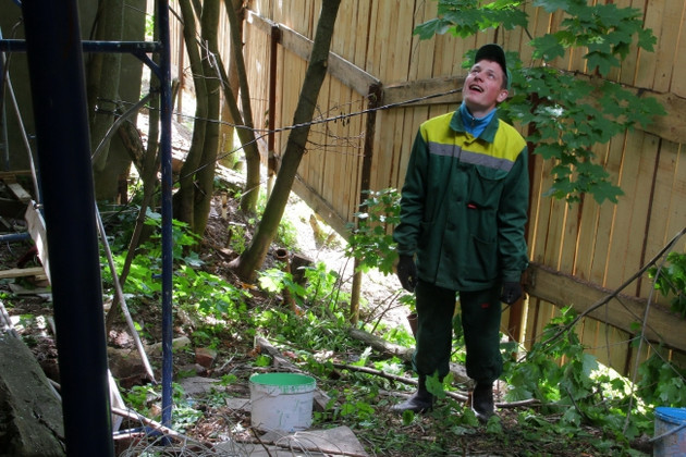 Мастер между тем провел натуральный митинг о том, какие нехорошие жители: устроили тут свалку, все отходы годами бросали на склон и теперь должны стыдиться того, что их старые дома выглядят настолько плохо, что их приходится теперь маскировать заборами и покрасками.