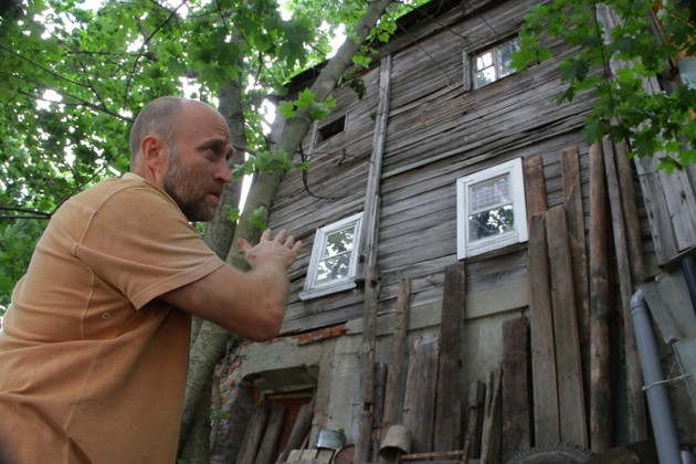 Но дом ветхий. И подвижный грунт ему не на пользу. Кирпичный первый этаж уже начал отходить от изношенного деревянного верха. В одном месте заметная щель. Спрашиваю: обращались ли собственники за помощью к властям (памятную доску-то власти повесили!)? Николай Михайлович говорит: в ответ приходят лишь отписки о том, что собственники сами должны обеспечить сохранность дома. Но этот дом признан исторически ценным, и реконструировать его должны только специализированные фирмы. А это очень дорого и жителям не потянуть.