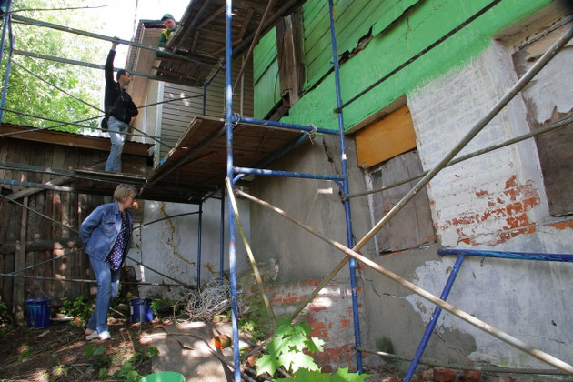 Светлана ведет нас за дом. Показывает, как подрядчик наводит марафет на ветхий и уже необитаемый дом № 7. От него до стены дома № 9 — от силы полметра. Если халупа загорится (говорят, туда заходят бомжи) — девятому дому мало не покажется. Хозяева боятся именно этого. И мечтают о сносе ветхого «соседа».