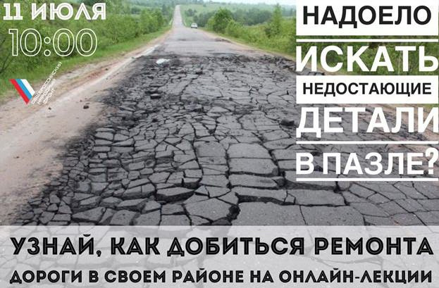 Руководитель проекта «Дорожная инспекция ОНФ/Карта убитых дорог» Александр Васильев расскажет, как добиться ремонта дороги в своем регионе.