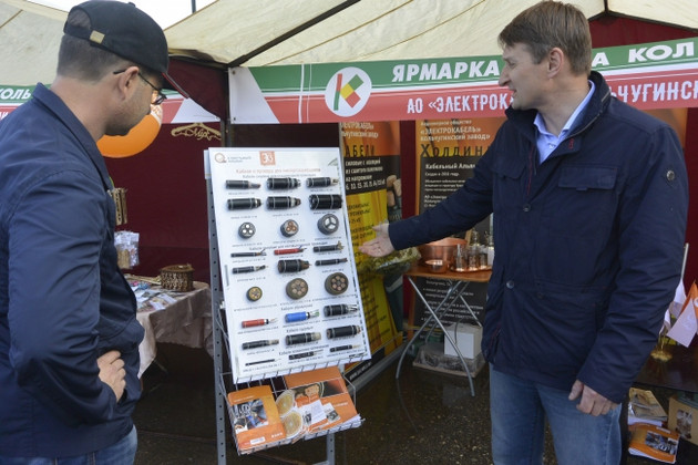 Вместе с купцом по торговым рядам отправились высокие гости и местные жители. В палатках продавцы разложили товар. Крестьяне из СПК «Воронежский» привезли отборное мясо, сыровары потчевали изысканным угощением по оригинальным рецептам, ювелиры рекомендовали прикупить дорогих подарков, мастерица Елена Туманова демонстрировала тарелки со своей уникальной росписью... Заводчане как именинники тоже в стороне не остались: любой желающий мог узнать у специалистов о преимуществах надежных кольчугинских кабелей или приобрести нужные в хозяйстве товары - медные тазы для варки варенья, банные ушаты или подстаканники.