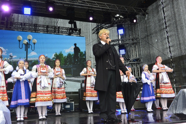 На сцене, установленной на городской площади, творческие коллективы развлекают народ. Артисты поют и пляшут - публика внимает и аплодирует, несмотря на непогоду. Уровень выступлений (и детских ансамблей, и взрослых) вполне приличный: хоть сегодня на какой-нибудь престижный конкурс отправляй!