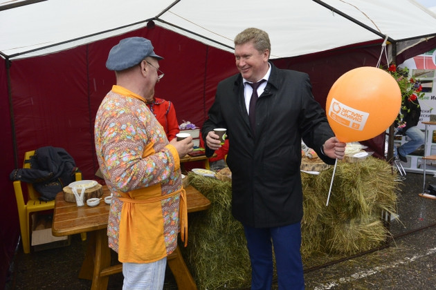 Пока разговаривали, выглянуло солнце и на сцене появился собственной персоной сам купец Кольчугин. Александр Григорьевич (нарядный - в черном сюртуке, при галстуке и с неизменным зонтом-тростью) прибыл лично засвидетельствовать свое почтение землякам, поздравить их с праздником и осмотреть ярмарку.