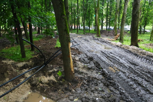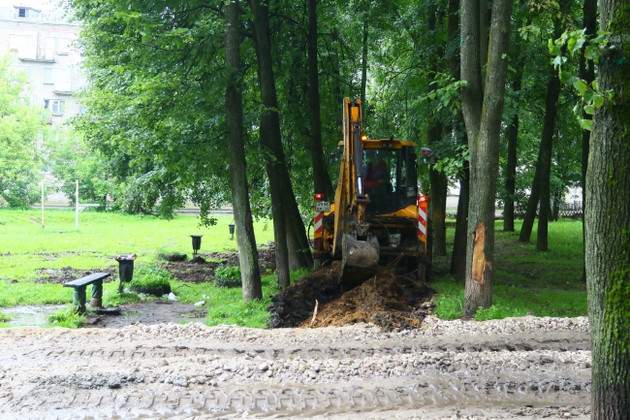 - Так нельзя делать, - объясняет Волков. – Сети в парках хорошо прокладывать под дорожками. Плитку легко разобрать в случае, если потребуется ремонт.