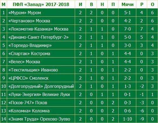Вечером того же дня прошли другие матчи тура, и, к удивлению многих, новичок профессионального первенства ФК «Муром» остался на вершине турнирной таблицы по лучшей разнице забитых и пропущенных мячей!