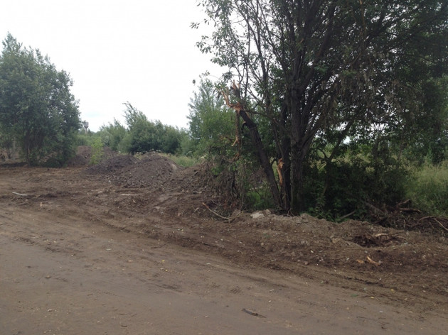 Очевидно, что это не единственный разгрузившийся здесь самосвал. Горами земли присыпаны деревья и кустарники. Растительность повреждена тяжелой техникой. Жители в суде показали фотографии места действия.
