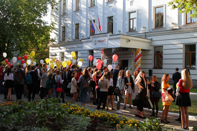 В сквере у филиала академии праздничное настроение создавал духовой военный оркестр из Ковровского 467-го окружного учебного центра. На украшенном связками воздушных шаров входе в филиал ‑ огромный красочный плакат «Добро пожаловать в общество успешных и знаменитых!». Первокурсники ‑ всего около 200 человек - выстроились в шеренги по факультетам.