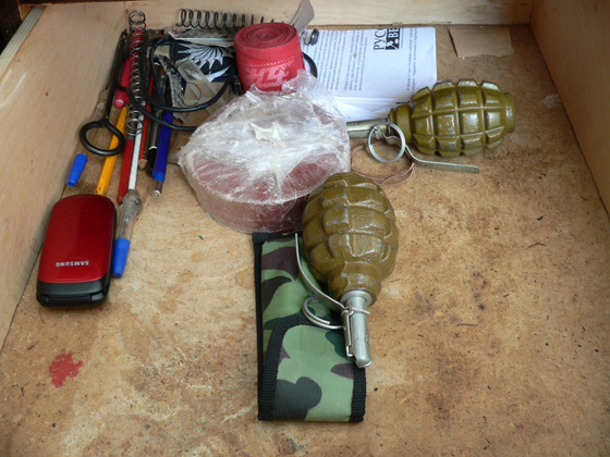 Во время обыска по месту жительства гражданина были изъяты две боевые гранаты Ф-1, травматический пистолет с конструктивными изменениями, холодное оружие (кастет, нож), экстремистская символика.