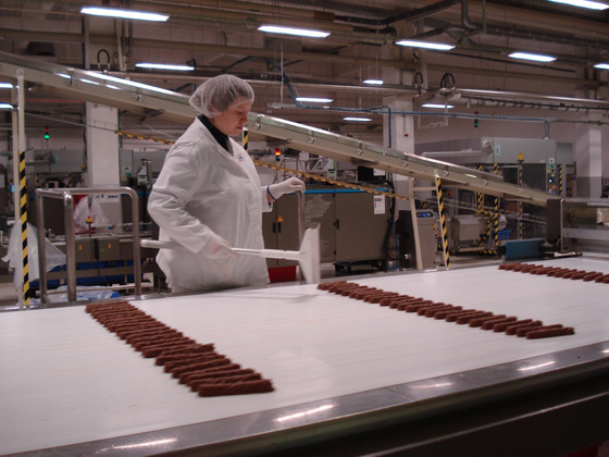«ВВ» сами убедились ‑ на покровской фабрике жесточайший контроль качества на всех этапах, из-за которого автоматика безжалостно отбраковывает и сбрасывает с линии шоколадки даже с микроскопическими вмятинками или невидимыми человеческому глазу дефектами упаковки. А санитарные нормы для персонала и таких как мы гостей-экскурсантов совершенно драконовские.