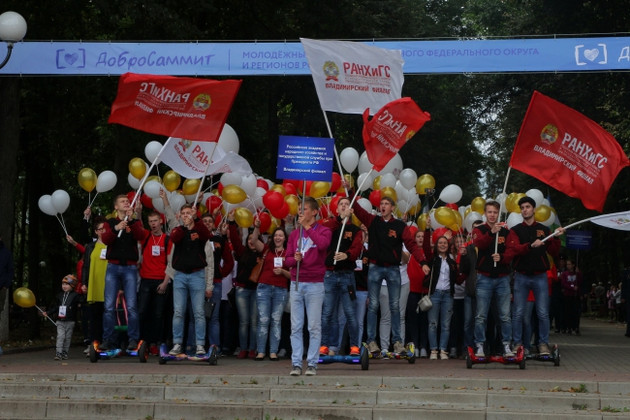 На фестивале весь день шли показательные выступления спортсменов и юных артистов. Богатыри тягали гири и отжимались с детьми на спине. Мамы из организации «Мамина радость» провели танцевальный флешмоб с малышами-грудничками. Куратор волонтерского движения «Чистое сердце» Юлия Савельева из Собинского района выступала вместе со своим коллективом «Эффект», с которым шефствует над детьми-сиротами из реабилитационного центра. На площадке «Равные возможности» представители учреждений и служб соцзащиты презентовали портфель социальных проектов, провели 40 игровых и танцевальных флешмобов. Не остался в стороне и вице-губернатор Михаил Колков, он участвовал в мастер-классе и нарисовал картину. Самые маленькие участники добровольческого фестиваля своими рисунками украшали асфальт. Всех угощали добро-чаем и пирожками.