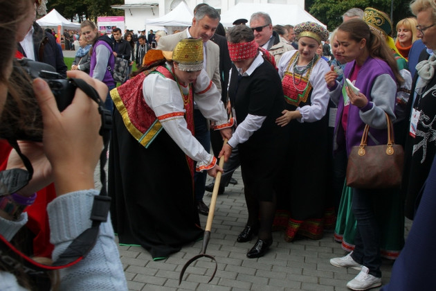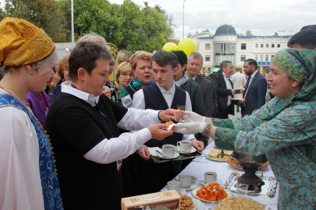 ...На площадке межнационального общения представители национальных диаспор и иностранные студенты ВлГУ развернули выставку декоративно-прикладного искусства, накрыли огромный стол с угощениями аварской, татарской, еврейской, цыганской кухни. И русский самовар как символ единения. Здесь знакомились, общались, водили хороводы и танцевали.