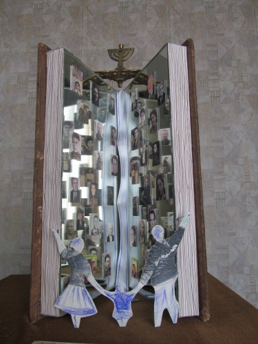 Саша Молодкин представил на конкурс работу, выполненную в виде символической Книги Жизни еврейского народа с зеркальными страницами и наклеенными на них фотографиями родных. Эффект многократного отражения получился потрясающим: лица предков отражаются, преломляются друг в друге, уходят в бесконечность времен к еврейским корням мальчика. На переднем плане полураскрытого альбома - фигурки Саши с родителями, а перед ними - сонм предков, уходящих в глубины истории всего народа. Работа носит название «Пока жива наша память».