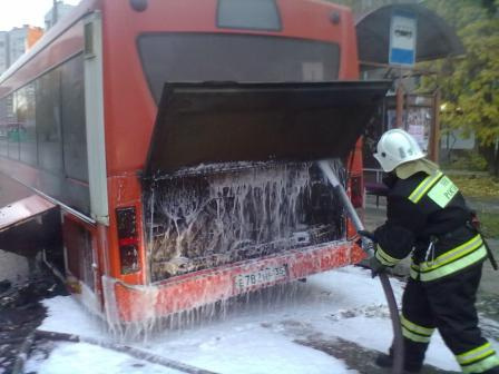 12 октября в 6.43 в Гусь-Хрустальном загорелся пассажирский автобус, следовавший по одному из городских маршрутов. Заметив задымление, водитель остановил машину в районе дома 58 по Теплицкому проспекту и выпустил пассажиров. В ранний час в салоне находились всего три человека, которые успели благополучно покинуть горящий автобус. Водитель, вызвав пожарных, принялся самостоятельно тушить огонь и практически справился с задачей до прибытия представителей МЧС, которые были на месте уже через пять минут после вызова. Огнеборцы «пролили» еще дымившийся моторный отсек. К 7 утра пожар, площадь которого составила 2 квадратных метра, был полностью ликвидирован. Причина возгорания устанавливается. В региональном ГУ МЧС отмечают правильность действий водителя в нештатной ситуации.