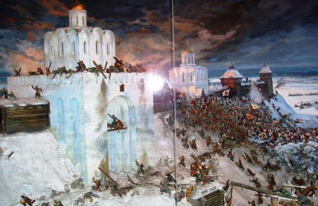 Вот диктор объясняет: городские стены не выдержали натиска монголо-татарских стенобитных машин, которые, мол, стали неожиданностью для владимирцев. Поразительно! Как наличие этих машин стало для владимирцев сюрпризом? Разве не эти же машины полутора годами ранее брали города Волжской Булгарии? А была ли у владимирцев глубинная военно-техническая разведка? Вообще - думали ли они, что им придется сражаться с монголами? Готовились к войне или нет?