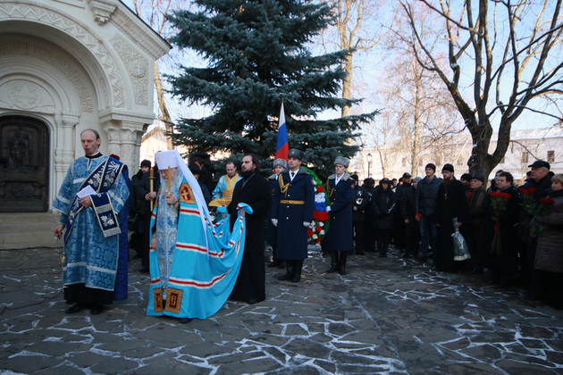 Глава Владимирской митрополии Евлогий лично отслужил панихиду по усопшему князю Дмитрию Пожарскому. Владыка от души поздравил пришедших и с большим церковным праздником - днем иконы Казанской Божьей Матери, вспомнив, как горячо к ней обратились Минин и Пожарский, чтобы осуществить свой замысел. Владыка напутствовал собравшихся: «Человек осознает, что без мира, без единения невозможно совершить бытие. Пусть это единение будет не только внешним, но и существенным, церковным, духовным. Единение поможет создать гармонию. Вот и сегодня солнце смотрит на нас и радуется», - заметил он. Действительно, полдень в Суздале был солнечный. Участники митинга возлагали цветы к кресту возле усыпальницы под колокола и звуки капели.