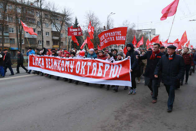 Все смешалось в нашей истории. Трудно, например, представить, чтобы 100 лет назад большевистскую акцию возглавлял духовой оркестр полиции. Но вчера было именно так. Вслед за полицейским оркестром шли статусные и возрастные коммунисты, среди которых был и экс-губернатор Николай Виноградов, чья партийная принадлежность не мешала ему быть частью государственной машины, построенной на принципах, отличающихся от заветов Ильича. Наверное, в этом и есть главное отличие сегодняшней России от России 1917 года: нынешние власти не устраивают против политических соперников ни гонений, ни репрессий, а интегрируют их в общегражданские дела.