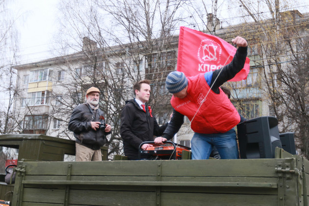 Сегодня часто сторонники Великого Октября (и справедливо, кстати) говорят о том, что наследие события 100-летней давности было столь мощным, что Россия до сих пор пользуется им. Но стилистически владимирские коммунисты, показалось, занимались тем же самым — использовали советское наследие, к которому сами они не имеют непосредственного отношения. Например, первый секретарь обкома КПРФ Антон Сидорко возглавлял колонну, восседая в кузове фронтовой полуторки, на которой он не воевал, которую не создавал, и вряд ли восстанавливал своими руками.