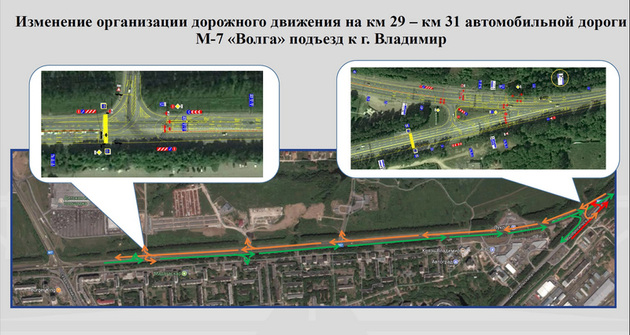 До конца года на этом участке М-7 на двух пересечениях осевое металлическое ограждение закроет левые повороты. На 29-м км трассы на выезде из Владимира в сторону Боголюбово дорожники установят светофор для регулирования очередности проезда перекрестка. Приоритеты движения потоков выровняются. До установки светофора для автобусов установлен особый режим движения. Знаки разрешают маршрутному транспорту повернуть на заправку.