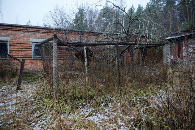 Мы с ним идем по зообазе. Вокруг - поваленные деревья, много пустых полуразрушенных вольеров, остовы строений, в которых едва угадываются домики и загоны для животных. Хозяйственные постройки не заперты, замки на многих сбиты. Заглядываем в первую попавшуюся: небольшой сарайчик, кафель со стены явно содран, дверной проем деформирован. Похоже, отсюда выламывали все сколь-нибудь ценное.