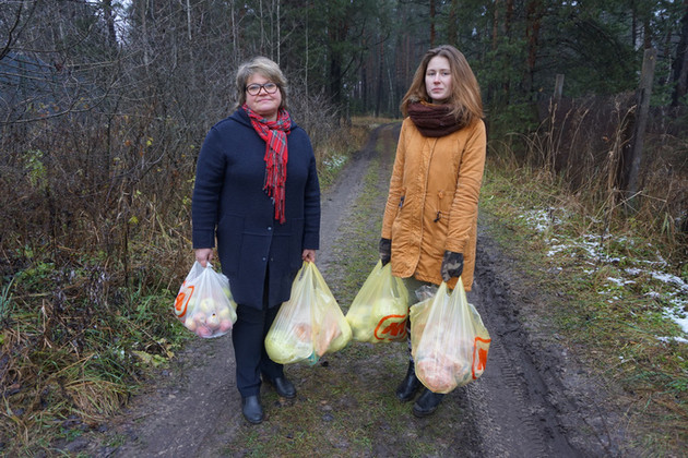 А сейчас тут безвластие. Его компенсируют десятки волонтеров, которые на своих плечах и руках приносят продукты для животных. Уже у самых ворот зообазы мы увидели еще двоих путников с тяжелыми пакетами в руках. Это директор средней школы № 1 Петушков Татьяна Грачева с дочерью Александрой несли очередную партию провизии.