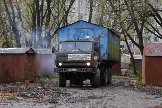 После того как вещи были перенесены и уложены, на них опускается гаражная коробка. Машина трогается на специальную стоянку (а увозят «уродцев» на охраняемую территорию ГСК-52 на улице Сунгирской). Там все манипуляции пройдут в обратной последовательности.