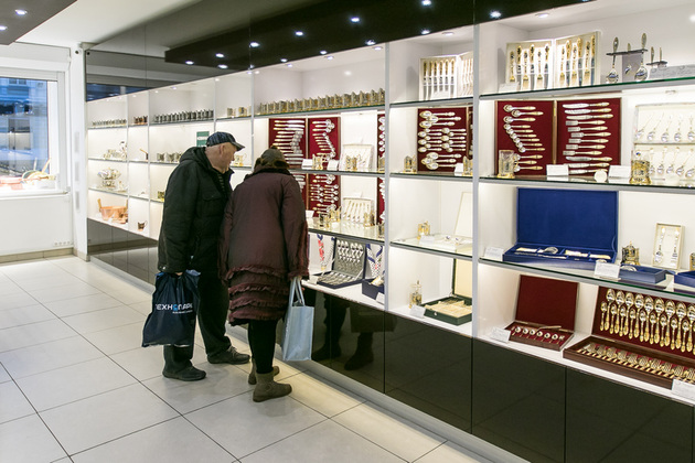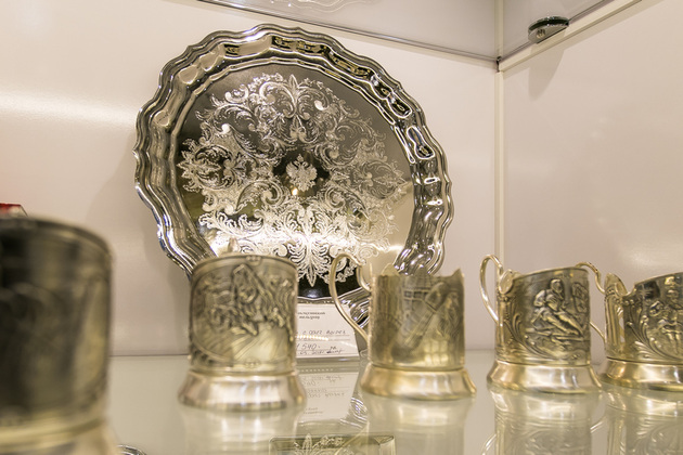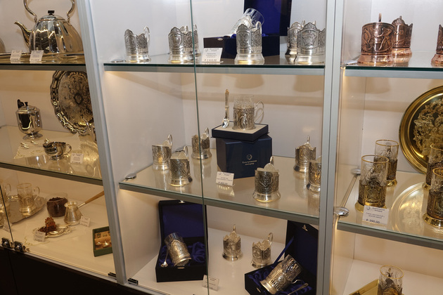 - Вариаций много, - подтверждает продавец-консультант Надежда Ковалева. - Практически каждый вид продукции можно выбрать в различном исполнении - посеребренные, с чернью или позолотой, с эмалью, из никеля, латуни, меди или серебра 925-й пробы. Во всех материалах наши изделия смотрятся хорошо, тут уж дело выбора, вкуса, финансовых возможностей. Но отмечу, что цены - доступные и продаем мы, например, столовые приборы не наборами, а по отдельности. Это очень удобно: при желании со временем можно собрать целую коллекцию, а в случае потери какого-то предмета докупить.