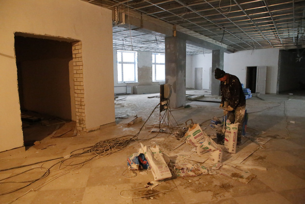- Качество сами можете видеть. Вот! - показывает нам почти готовый класс и.о. директора департамента строительства АВО Дмитрий Золин. - Стены сухие, ровные, окрашены в приятный цвет. Из четырех корпусов школы три полностью достроены, и там идут отделочные работы. Один пока достраивается. После этого сразу же будет запущено отопление и начнется отделка.