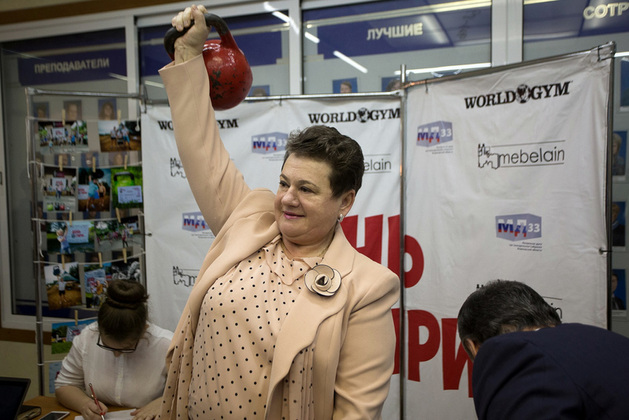 Светлана Орлова пообщалась с добровольцами и в неформальной обстановке. За чаем они рассказали губернатору о своих проектах. А на выставке добровольческих штабов ВлГУ Светлана Орлова приняла участие в «Дне гири», 11 раз подняв 8-килограммовый снаряд.