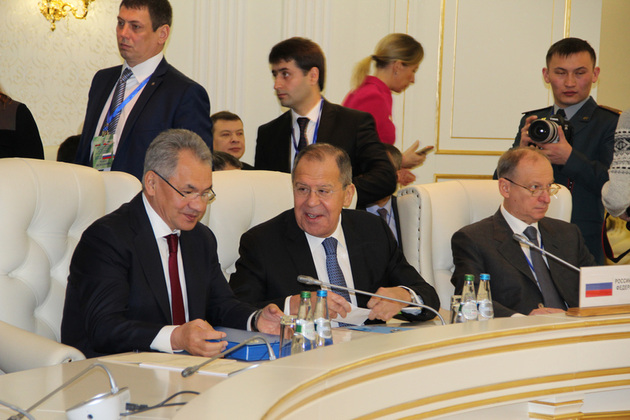 В Минске Лавров 30 ноября участвовал в заседании Совета МИД, Совета глав оборонных ведомств и комитета секретарей Совета безопасности стран ОДКБ (в настоящее время в ОДКБ входят Армения, Белоруссия, Казахстан, Киргизия, Россия и Таджикистан). Кроме Лаврова российскую сторону представляли министр обороны РФ Сергей Шойгу и секретарь Совета безопасности РФ Николай Патрушев. Также в юбилейной встрече глав государств — членов ОДКБ принял участие и Президент России Владимир Путин.