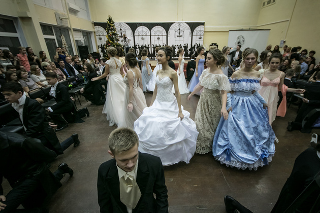 ...До назначенного времени еще час, но к школе уже съезжаются «экипажи». Барышни с вечерними прическами по моде пушкинской поры и вполне актуальными в XXI веке бережно несут упакованные в чехлы наряды - бал в их жизни первый, и потому волнение - главная пока эмоция. Кавалеры тоже волнуются, поправляют «галстухи», смахивают невидимые пылинки с фраков и мундиров.