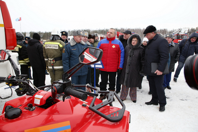 Пучков и губернатор области Светлана Орлова прилетели в Доброград (там есть вертолетная площадка) и оценили состояние группировки сил и средств территориальной подсистемы РСЧС региона, предназначенной для работы во время пожароопасного периода, а также аэромобильной группировки ГУ МЧС России по Владимирской области. Спасатели показали имеющиеся у них образцы пожарно-спасательной техники повышенной проходимости, беспилотные летательные аппараты, квадроциклы.