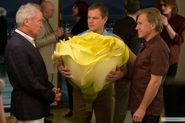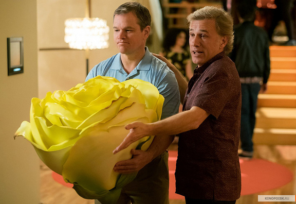 «Короче» - плод совместного труда норвежских и американских кинематографистов. Набор актеров тоже интернационален, хотя в главных ролях задействованы все же звезды Голливуда: Мэтт Дэймон, Кристоф Вальц и Кристен Уиг. Зато «завязку» сюжета (если это можно назвать полновесным сюжетом) сценаристы отдали скандинавам: именно норвежские ученые придумали в картине технологию по уменьшению людей, которая при успехе экспериментов когда-нибудь должна помочь нашему миру справиться с перенаселением Земли. Суть технологии – элементарно уменьшать людей и селить их в этаких комфортных, светлых и ухоженных мини-городках. В пилотном проекте по «минимизации» согласились в числе прочих участвовать простой парень из Омахи Пол и его жена Одри, благо, это сулило им огромные деньги. Правда, даже Дэймону с его лицедейским талантом оказывается сложно убедить нас, зрителей, стоило ли оно того. Потому что особых проблем у его героя не было и в прежней, «большой» жизни. Кредиторы за ним не гонялись, банк не описывал дом, на работе все было стабильно и перспективно… Зачем продаваться? Зато понятно, что его «маленькая» жизнь целиком и полностью зависит от тех, кто курирует весь эксперимент с новоиспеченными человеко-гномиками. А вернуться к исходному облику уже нельзя. Почему герой об этом не подумал? Большой вопрос, потому что на классического пофигиста он не похож. Скорее, есть в нем элементы инфантильности. Кристофу Вальцу создатели дали роль приятеля главного героя, весь функционал которого – поднимать, так сказать, настроение и боевой дух друга.