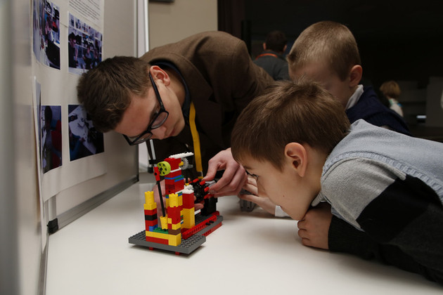 Учащимся 5-6-х классов нужно было сконструировать перевозчика из конструктора одной из известных марок. Также из этого конструктора 3-4-классники собирали робота-чертежника. Ребята помладше соревновались в создании роботов, способных обходить разные препятствия. А самые маленькие, 6-8-летки, демонстрировали свои проекты на стендах «Охрана и сбережение водных ресурсов».
