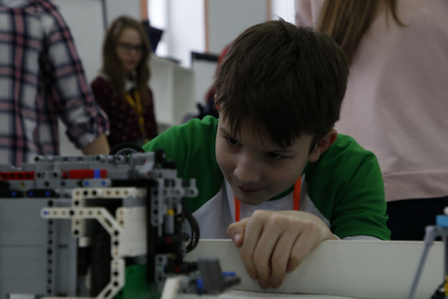 Самые старшие юные робототехники (13-17 лет) кроме конструкторского задания решали олимпиадные задачи по физике. Школьники 6-9-х классов соревновались в категории «робот-перевозчик». Учащиеся 3-5-х классов состязались в робототехническом «шорт-треке».
