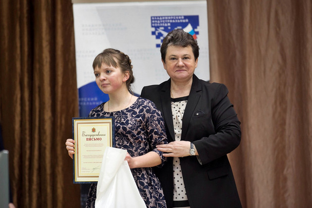 Губернатор также вручила благодарственные письма областной администрации преподавателям и мастерам производственного обучения за подготовку призёров и победителей национального чемпионата профессионального мастерства среди людей с инвалидностью «Абилимпикс-2017», а также за работу с социально незащищенной категорией обучающихся: Вячеславу Антонову (Владимирский политехнический колледж), Светлане Виноградовой (Владимирский экономико-технологический колледж), Евгению Данилову (Муромский промышленно-гуманитарный колледж), Галине Николаевой (Владимирский технологический колледж), Татьяне Солдатовой (Суздальский индустриально-гуманитарный колледж), Сергею Степанову (Ковровский транспортный колледж), Алле Епифановой (Владимирский экономико-технологический колледж), Ларисе Пешехоновой (Владимирский индустриальный колледж), Ангелине Смирновой (Владимирский технологический колледж).