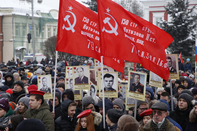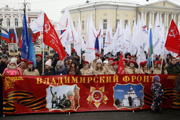 - Пришла на митинг в память об отце, участнике Великой Отечественной войны, Герое Советского Союза Александре Евсееве, - поделилась с нами учительница владимирской школы Лариса Вальдман. - Он в 16 лет ушел добровольцем на фронт, прошел всю войну, был ранен, контужен.