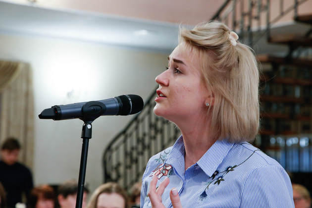 Прекрасная, как богиня, студентка Владимирского областного музыкального колледжа стала украшением финального концерта. Играла Ксения на экзотическом для классической сцены инструменте – гуслях. Примечательно, что основная специальность Ксении – хоровое пение, а гусли она начала осваивать всего два года назад как дополнительный инструмент. Но их звучание настолько покорило девушку, что ей в пору менять специализацию. По крайней мере, именно гусли привели Ксению в финал конкурса, где она очаровала публику, исполнив «Андалузский концерт» Беляева. Академический стиль игры на гуслях во Владимире развивает педагог Ксении Анастасия Михайловна Старчак, которая в следующем году планирует набрать целый курс гусляров.