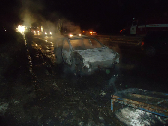 Вечером 6 марта на 128 км трассы М-7 «Волга» в аварии погиб человек и две машины сгорели.