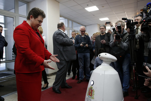 Губернатор общается с роботом на форуме "50 Плюс". 6.03.2018