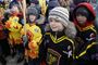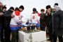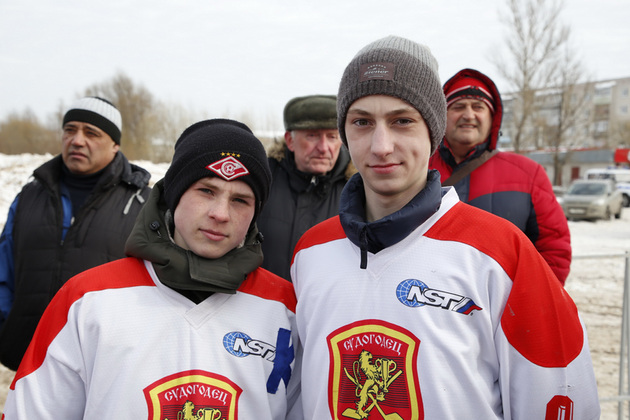 На ветру в ожидании праздника мужественно стоял первоклассник Миша Кузнецов. Он внимательно следил за приготовлениями, не поддаваясь на уговоры пойти погреться. Миша первый год ходит в хоккейный клуб «Судогодец». Хорошо держится на льду, но пока только учит приемы и технику. До участия в битвах ледовых дружин еще надо подрасти. Его мама Варвара рассказала, что сейчас тренируются мальчишки в непростых условиях – в холоде и на ветру.