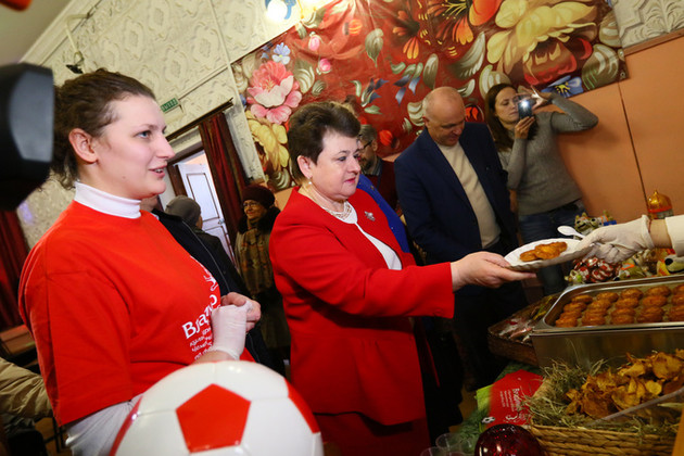 А в зрительном зале ДК была развернута дегустация «футбольного меню», подготовленного разными кафе и ресторанами для того, чтобы потчевать гостей Владимира — культурной столицы чемпионата мира по футболу.