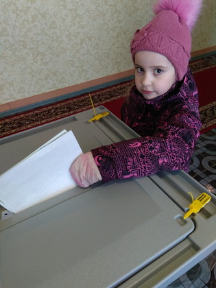 Бюллетень в урну для голосования Игорь Ефремов доверил опустить своей внучке.
