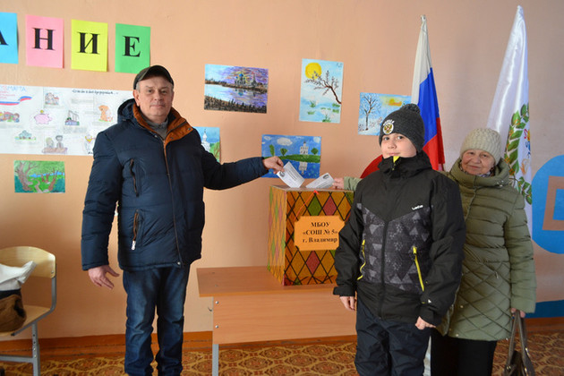 Вместе с Татьяной Синюковой мы посмотрели, как в помещении на первом этаже идет «школьное голосование». Ведь 18 марта во всех школах города Владимира выбирают лучшую из них. Например, пятиклассник Игорь Соловьев пришел голосовать за лучшую школу сам, привел бабушку и дедушку, и те внука в его выборе активно поддержали.
