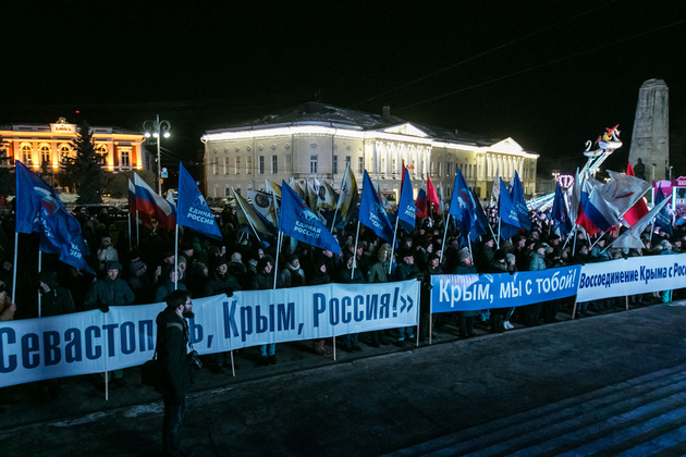 Ну а на митинге во Владимире многие проводили параллели между голосованием за президента России и референдумом в Крыму 4 года назад. Сопредседатель регионального ОНФ Сергей Кравченко сказал: