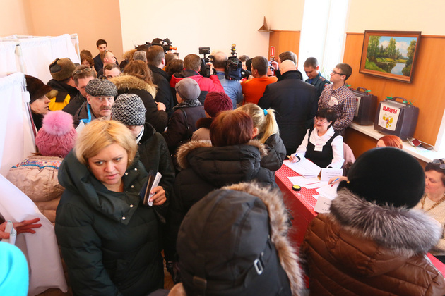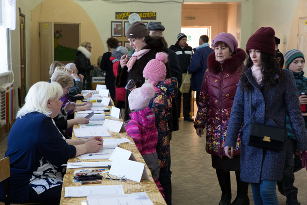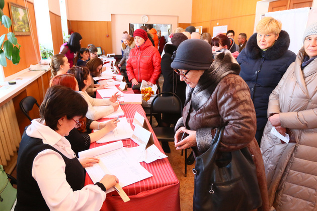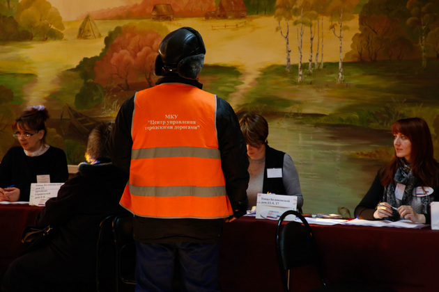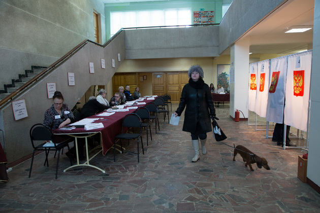 Глава горизбиркома Вадим Кузьмин прибыл на свой участок в ГДК к открытию и обнаружил у входа очередь из желающих проголосовать. На предыдущих президентских выборах утренняя активность избирателей была меньше.