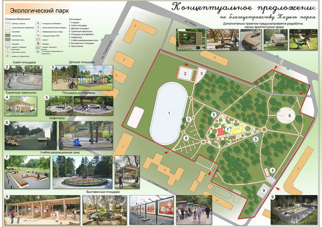 Согласно концепции, разработанной группой студентов архитектурного факультета, здесь должны появиться: учебная площадка для практических занятий по биологии и экологии, выставка работ студентов института искусств, амфитеатр, где будут проходить уличные кинопоказы, лекции и концерты, детская площадка и барбекью-зона.