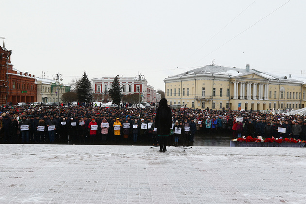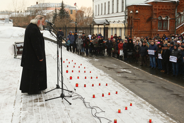 Собравшиеся почтили минутой молчания память погибших в Кемерове.